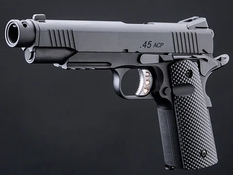 Magazine: 15 1 rounds. Works with WE and other compatible Airsoft 1911 Series Magazines
