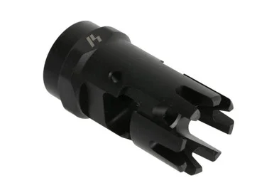 Strike Industries Checkmate Comp for .223/5.56rThe Checkmate Comp is a top quality, multifunctional muzzle instrument that is designed with a series of four off-set serrated angled prongs which stabilizeclimb and recoil. The top port set to the right, benefits right-hand shooters withminimizing excessive climb. The aggressive front is an added feature that makes sure no one gets tooclose. The parkerized steel, design, and detail attest to the quality that SI continues to provide. TheCheck Mate is sure to dish out the maximum amount of royal pain!rProduct Spec:- Length: 1 7/8″- Weight: 2.4 oz- Thread Pitch: 1/2×28- Caliber: .223/5.56rPackage include:-1 x Check mate comp (with crush washer)rFeatures:-Aggressive front serrated prongs-Top port for right hand shooters-Parkerized Steel finish-Offset angled to increase stability-Two paralleled ports to expel gas-Relatively low muzzle flash