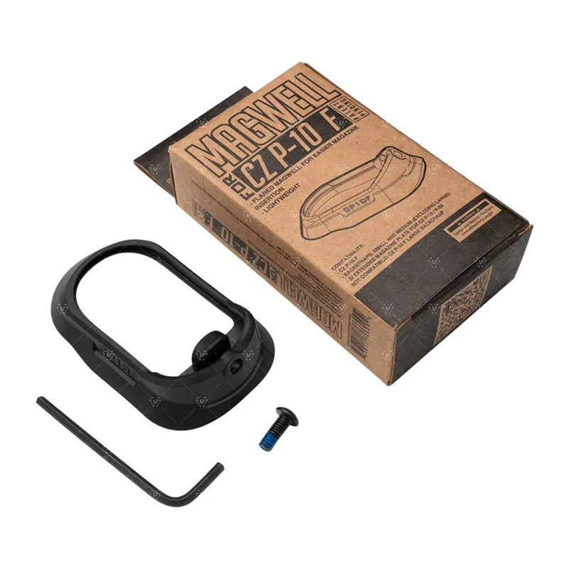 The Strike Industries Magwell for CZ P-10 F was designed to provide easier reloading of the magazine while adding SI styling. With the added front lip of the magwell, this SI magwell gives improved grip support. This magwell is made of high-strength impact resistant custom blended SI Polymer Extreme material. Keeping to the slender factory design of the pistol grip, the benefit of adding a funnel-like magwell to help prevent the dreaded reload bobble outweighs the added material of this SI Magwell. Add consistency and cut fractions of seconds off your reloads now with the Strike Industries Magwell for CZ P-10 F while comfortably carrying your pistol on your hip or in your waistband. Compatible with most aftermarket magazine base plates.