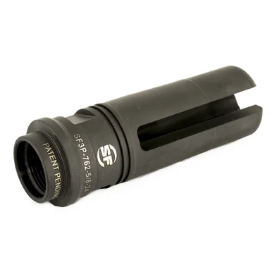 Surefire SOCOM Flash Hider/Suppressor Adapter 7.625/8″x24rThe Surefire SOCOM Flash Hider/Suppressor Adapter 7.62 is an advanced firearm accessory engineered to significantly reduce muzzle flash, typically over 99%, compared to a plain muzzle. Designed to fit the Armalite AR-10, DPMS LR308, and 7.62mm rifles with 5/8-24 muzzle threads, this three-prong flash hider features sturdy tines that can endure the demands of combat. More than just a flash hider, it is a solid mounting adapter for SureFire SOCOM Series 7.62mm Fast-Attach® suppressors. It is made from US mill-certified heat-treated stainless steel bar stock and includes high-precision single-point cut threads for optimal thread interface. Coated in black Ionbond DLC, it ensures maximum protection in harsh conditions and eases cleaning, even after extreme use. When used with a SureFire SOCOM Series suppressor, the flash hider’s patent-pending design offers multiple bearing surfaces for superior suppressor alignment and prevention of audible tine ringing. Its rear labyrinth seal minimizes carbon buildup in the indexing system and aids suppressor removal after extended use. Each SureFire flash hider undergoes individual inspections for concentricity and alignment, ensuring the highest quality, and is backed by SureFire’s No-Hassle Guarantee.rFeatures:rrBlack Ionbond DLC coatingrInstallation requires no permanent modificationrMade from heat treated stainless steel bar stock