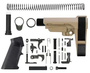 Tactical Sports SBA3 Pistol Lower Build Kit – Adjustable Pistol Brace – FDE
