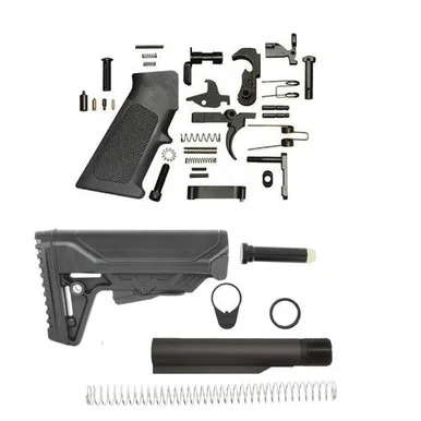 Trinity Force Cobra MK2 AR 15 Lower Build KitThe Cobra Stock MK2 features our own Patented locking system, battery storage compartments, and oversized cheek rest. The Cobra MK2 is easy to install and remove on any Mil-Spec buffer tube. The butt-pad profile is angled to accommodate plate carriers, and the aggressive texturing will ensure minimal movement when manipulating the rifle under stress. With multiple sling points and lightweight snag-free construction, the Cobra fits into most builds with ease. For your safety, Trinity Force recommends this part be installed by a competent, qualified gunsmith/installer with an understanding of the weapon platform that the part is being installed on. Always make sure the firearm is unloaded and pointed in a safe direction when workingIncludesTrinity Force MK2 StockAR 15 Lower Parts Kit (American Made)AR 15 Buffer Tube Kit (American Made)6-position 6061-T6 Aluminum Receiver Extension3 oz BufferCastle Nut & End PlateCarbine Spring