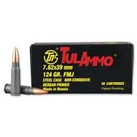 Tula 7.62x39mm 124 gr FMJ 40 per box, 1000rds per case