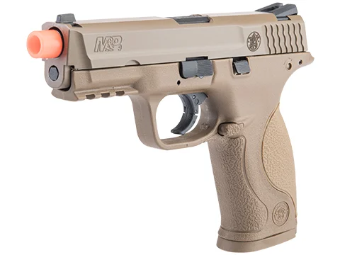 With full blowback slide action this Smith & Wesson M&P 9 airsoft pistol is powered by green gas such as Elite Force Fuel. This single action pistol comes with a 23-round airsoft magazine and shoots at 310 fps. This airsoft handgun is VFC made for Umarex and Elite Force.
