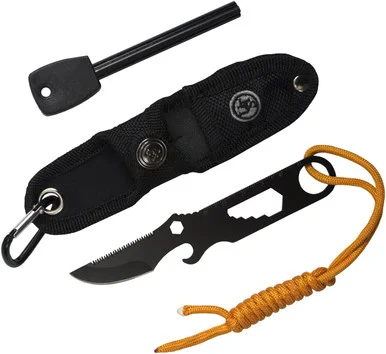 • Protective sheath provides safe storage for knife and fire starter
