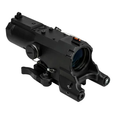 VISM Magnification Scope4X Magnification 34mm scope with two forward mounted Green Laser pod and Red/White LED Navigation light pod. Top mounted Backup Iron rear peep sight and Fiber Optic front sight post. There is three different mounting positions for the Iron Sights left and right offset and top 12 o’clock position. Top of the ECO scope has an integrated VISM Micro Dot reflex dot sight base for mounting a secondary reflex optic to the top of the scope. Black Anodized Die Cast Aluminum body.Features:Top mounted Backup Iron rear peep sight and Fiber Optic front sight post. There are three different mounting positions for the Iron Sights left and right offset and top 12 o’clock position.Top of the ECO scope has an integrated VISM Micro Dot reflex dot sight base for mounting a secondary reflex optic to the top of the scope.Glass Etched Urban Tactical Reticle with illumination for Quick Target Acquisition.Electronic Control Panel for: Reticle Illumination levels, to change color of illuminated reticleIntegrated Auto Locking Quick Release Mount, fits Weaver/ Picatinny/MIL-STD 1913 type railsUses 1 CR123A Lithium Type Battery (Included)Die Cast Aluminum Body with Black Anodized bodySpecifications:Objective Lens Diameter: 34 mmMagnification: 4 xReticle: Urban TacticalExit Pupil: 8.5 mmBattery Type: CR123ABattery Quantity: 1Field of View, Linear: 29.2 ft at 100 ydsField of View, Angle: 29.2 degreesEye Relief: 2.3 inColor: Black AnodizedWeight: 19.9 ozLength: 6.3 inWidth: 2.5 inIllumination Type: LEDIllumination Color: BlueAdjustment Type: MOAAdjustment Click Value: 0.25 MOAOptical Coating: GreenWeather Resistance: YesFinish: AnodizedIncluded Accessories: Green Laser, Red/White LED LightMagnification Type: Fixed