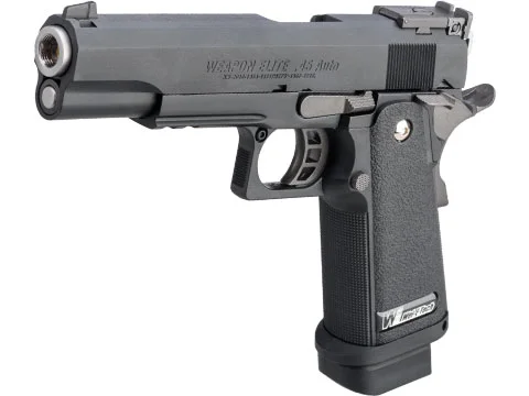 Based off the TM spec HiCapa 5.1, the WE version features an aluminum slide and reinforced internals to reduce wear when used with green gas/propane.