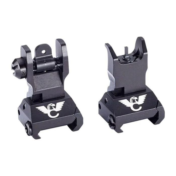 Made in the USA from mil-spec, hard-anodized aluminum, these sights are a rugged, click adjustable option for your next AR rifle or pistol build.These high-quality folding front and rear sights easily clamp on any standard Picatinny rail and have a positive, upright steel locking mechanism for rigid, accurate durability under heavy use.The elevation adjustable front sight has a standard A2 front sight post and is compatible with most aftermarket front sights. The anti-snag rear sight is low profile, finger adjustable for windage and has a dual peep with a .200†and .075†aperture.