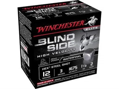 Winchester Blind Side High Velocity waterfowl ammunition takes the innovative, popular Hex shot loaded in traditional Blind Side loads to even faster speeds.